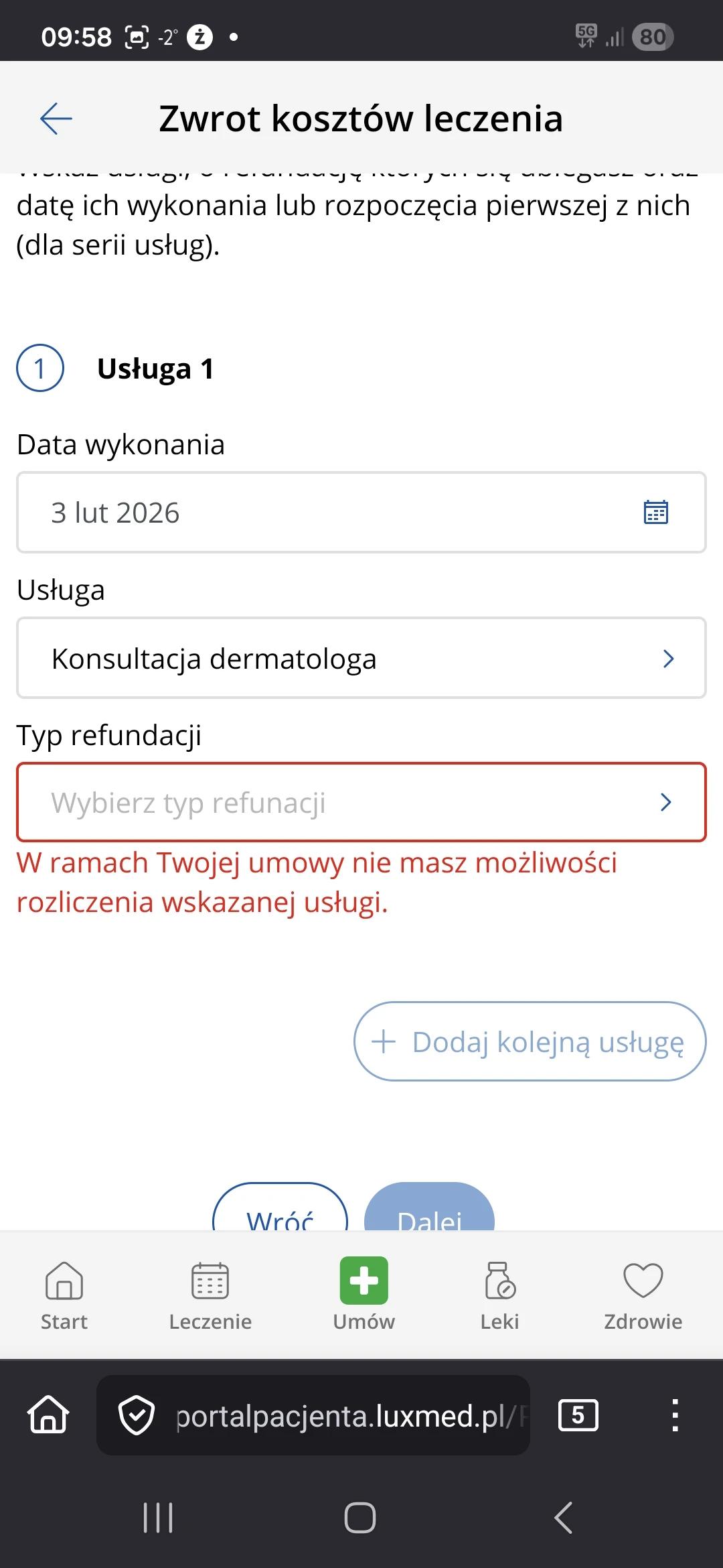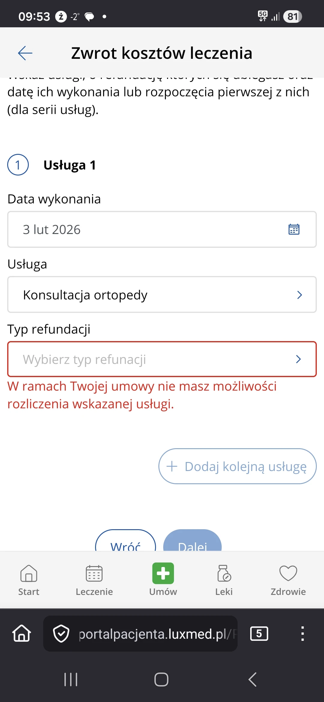 Obojętnie jakiego lekarza wezmę , typ refundacji powinno wyskoczyć nasza nazwa pakietu i że mamy 90% wraz limitem 650 zł